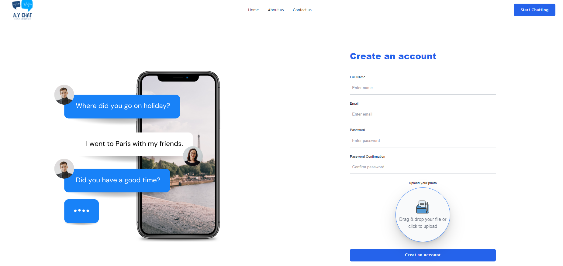AY.ChatApp est une application de messagerie instantanée rapide, sécurisée et moderne, conçue pour simplifier vos communications personnelles et professionnelles.