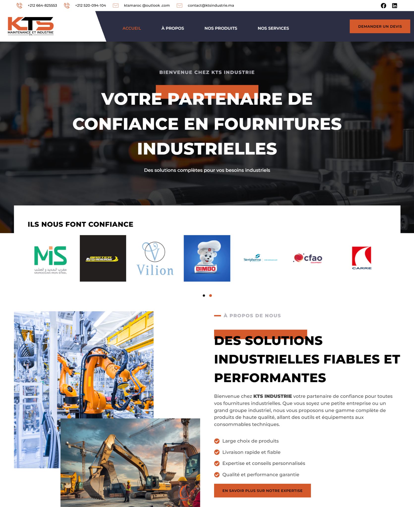 Description: KTS Industrie un site vitrine WordPress capable de présenter l’ensemble de ses solutions industrielles – flexibles, raccords, composants hydrauliques et pneumatiques – au travers d’un catalogue filtrable clair