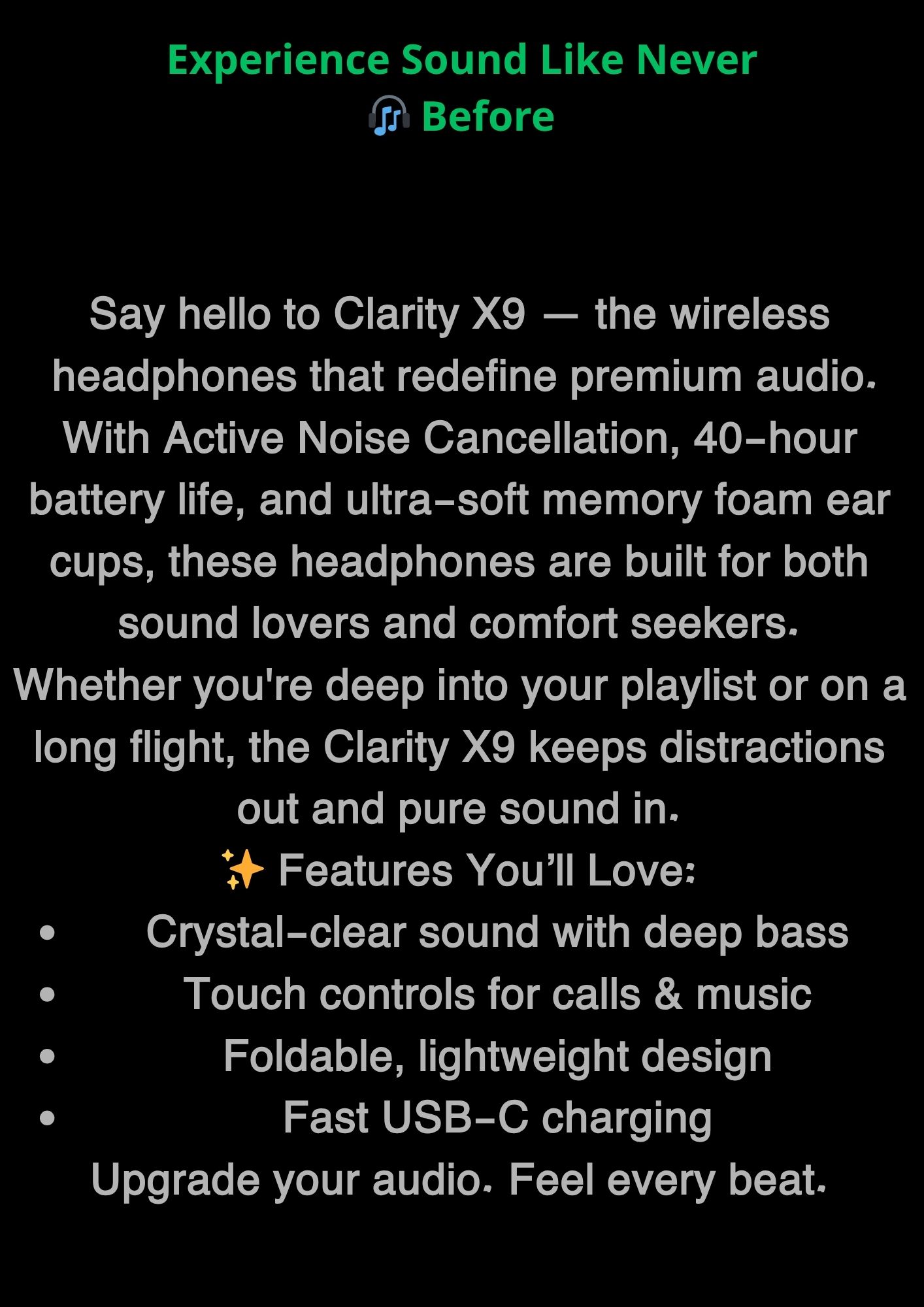 Description:This product description is written for a high-end electronics brand. The goal is to highlight the key features in an engaging way that persuades the reader to purchase. The tone is sleek, modern, and benefits-focused.