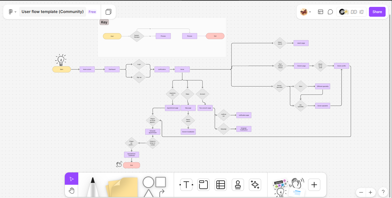 The user flow of this medical appointment booking app is designed to ensure a smooth and intuitive experience for patients. From the moment users open the app, they are guided through a seamless journey—starting with simple authentication, followed by intelligent search and filtering to find doctors based on specialty, location, or availability. Each doctor profile offers key details and the ability to instantly select and confirm an appointment slot. Users can easily review upcoming visits, receive timely reminders, and manage personal information, making the entire booking process efficient, personalized, and stress-free.