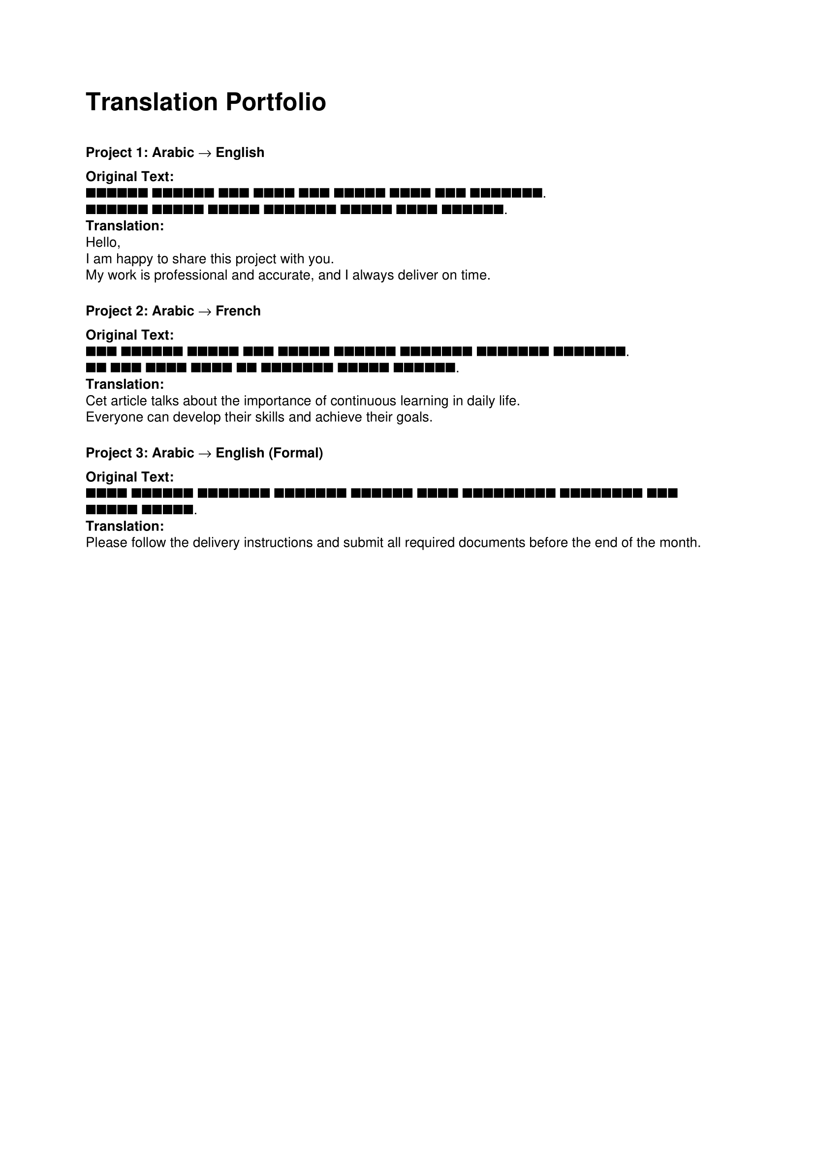 Sample translations demonstrating my work with Arabic, English, and French texts.