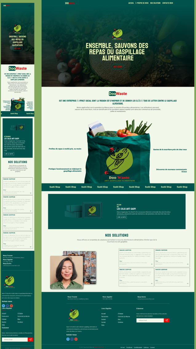 Doowaste est une plateforme web innovante inspirée de Too Good To Go, conçue pour lutter contre le gaspillage alimentaire au Maroc. Elle permet de connecter les utilisateurs avec des restaurants partenaires proposant des repas à prix réduit en fin de journée.