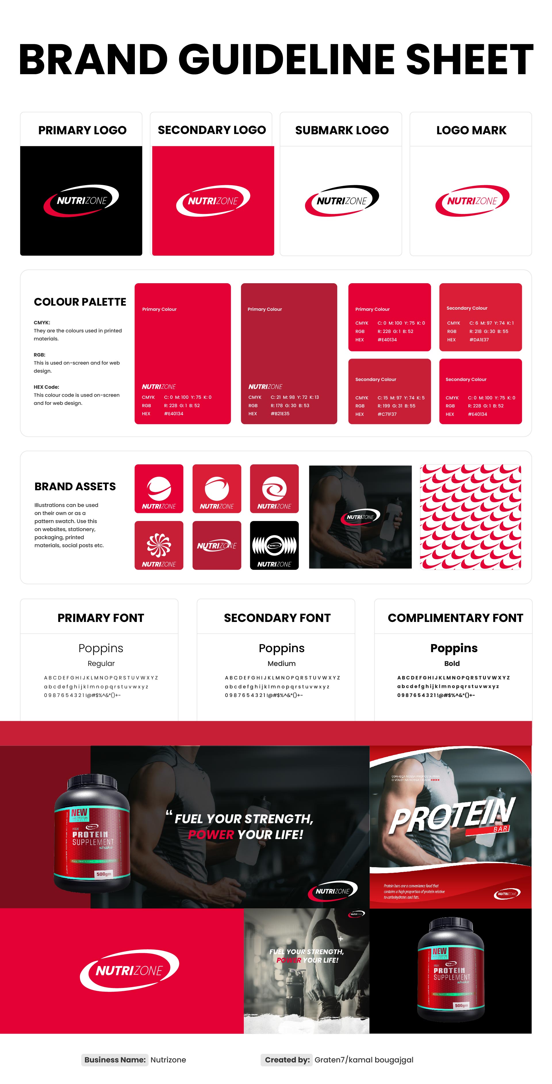 J’ai eu le plaisir de concevoir l’identité visuelle complète de NutriZone, une marque spécialisée dans les barres protéinées et les produits sains, basée à Casablanca. L'objectif était de créer une image de marque forte, moderne et dynamique, reflétant l’énergie et la puissance des produits NutriZone.