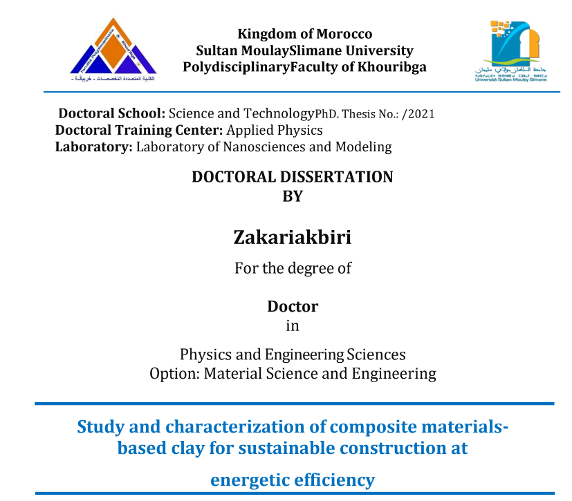 Cette thèse porte une étude et caractérisation des matériaux composites à base d’argile