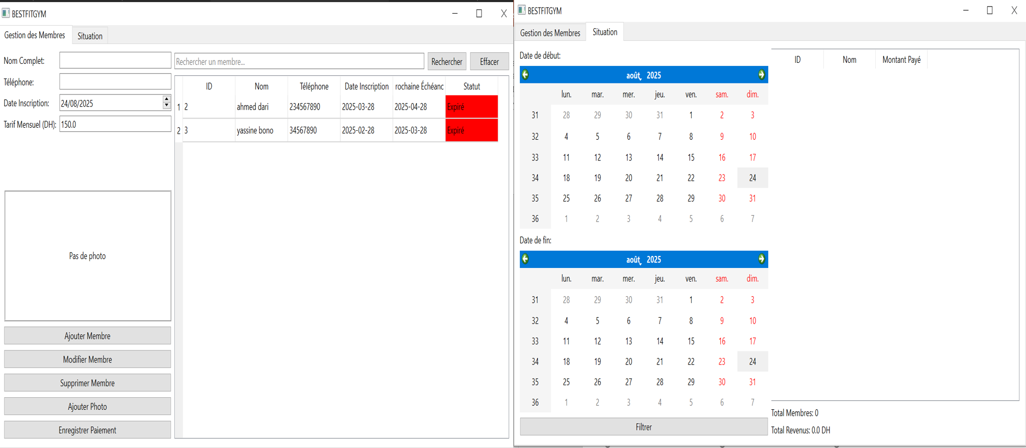 Conception et développement d’une solution complète pour la gestion d’une salle de sport :