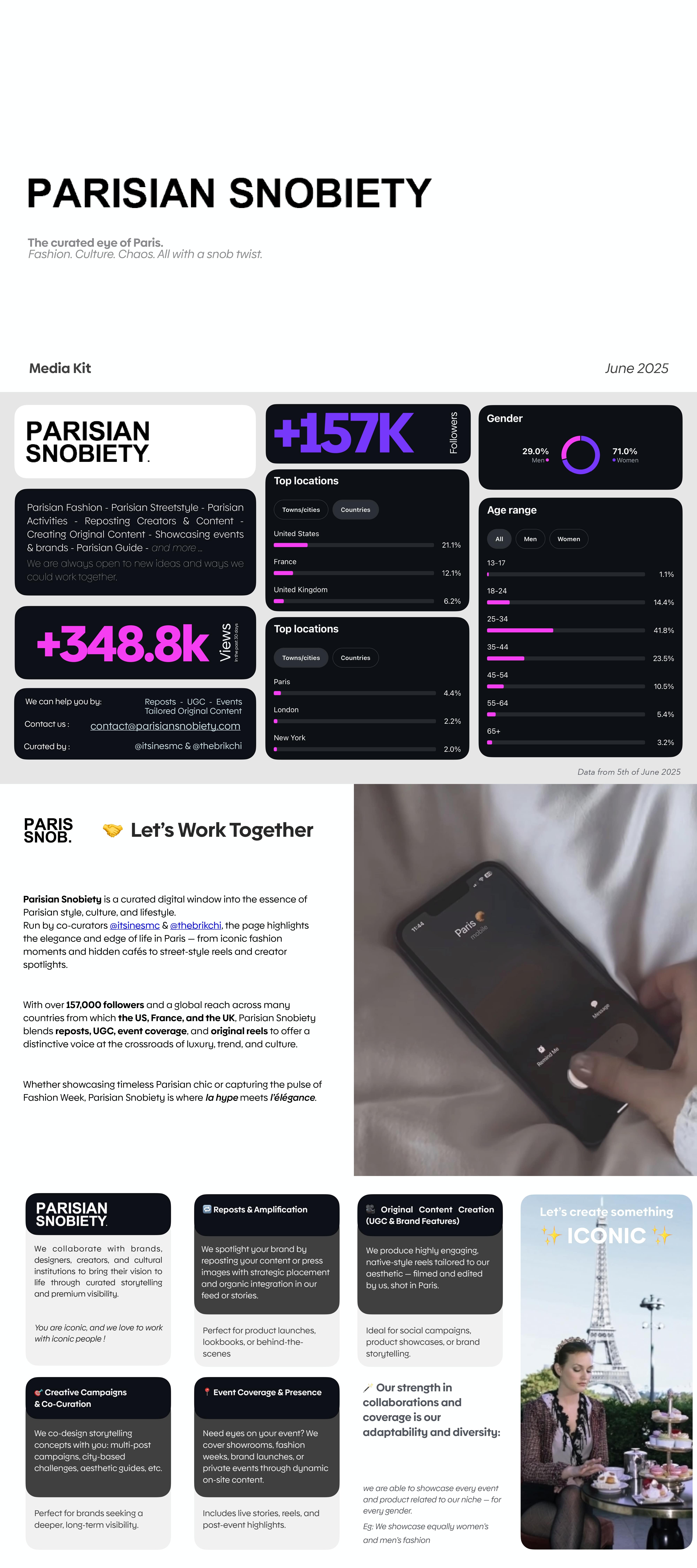 Description: Page Instagram @parisiansnobiety créé pour partager du contenu autour de Paris. Je suis l'un des deux curateurs de la page, où j'anime la communauté et crée du contenu.