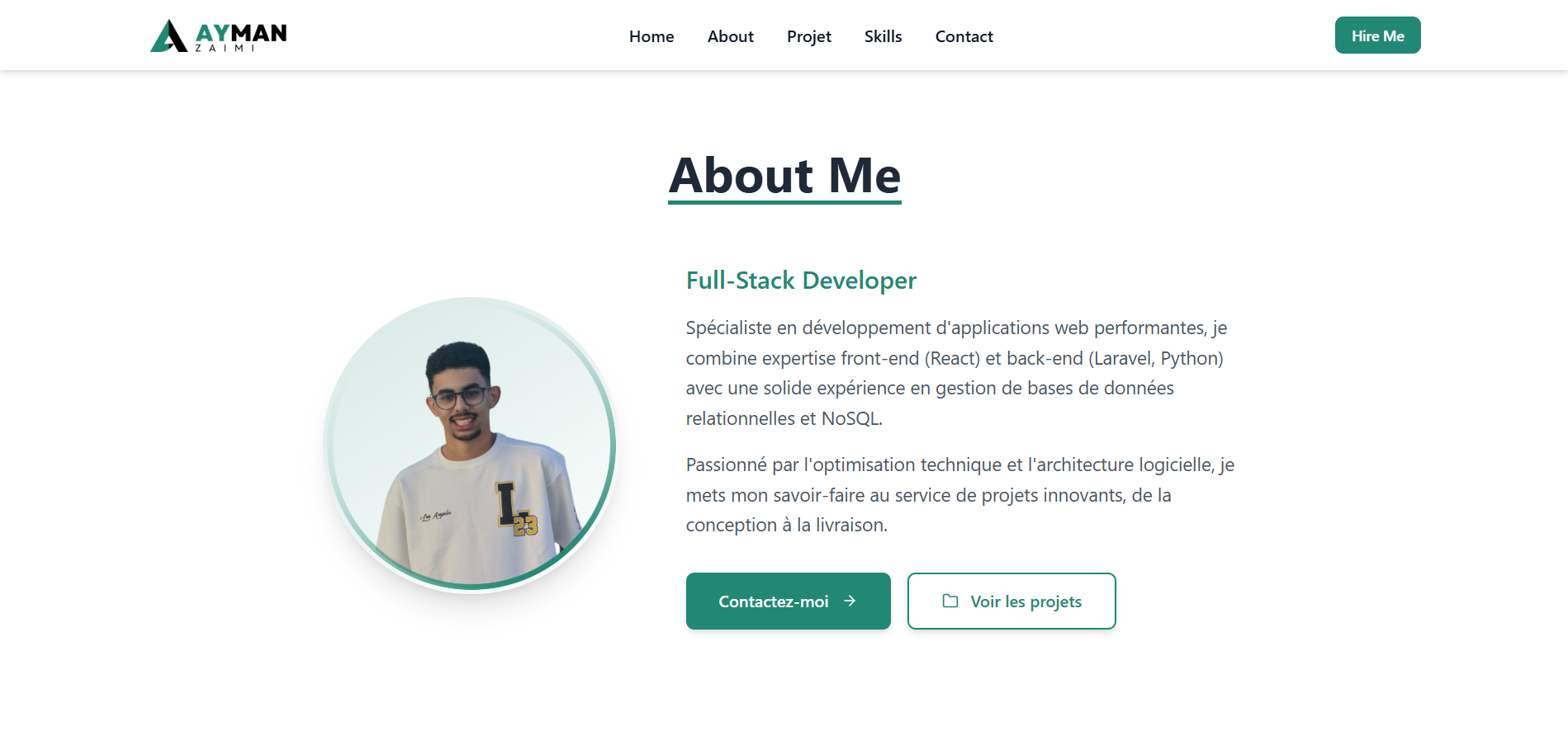 Bienvenue sur mon portfolio — je suis Ayman Zaimi, développeur web passionné spécialisé en React.js et Tailwind CSS.