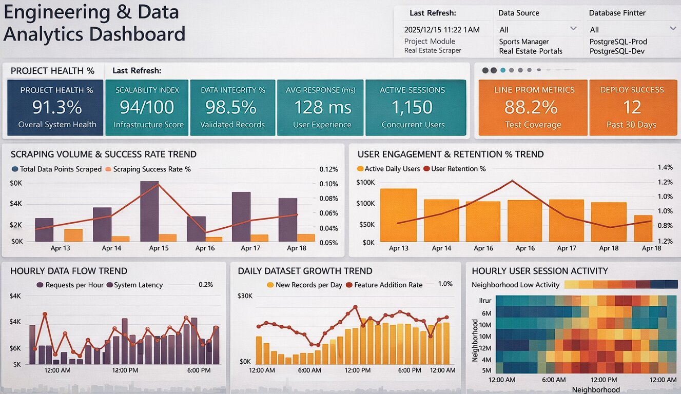 Advanced Engineering Dashboard: Created a high-fidelity interactive dashboard (React/Streamlit) to monitor engineering KPIs such as System Health, Data Integrity, and API Response Times.